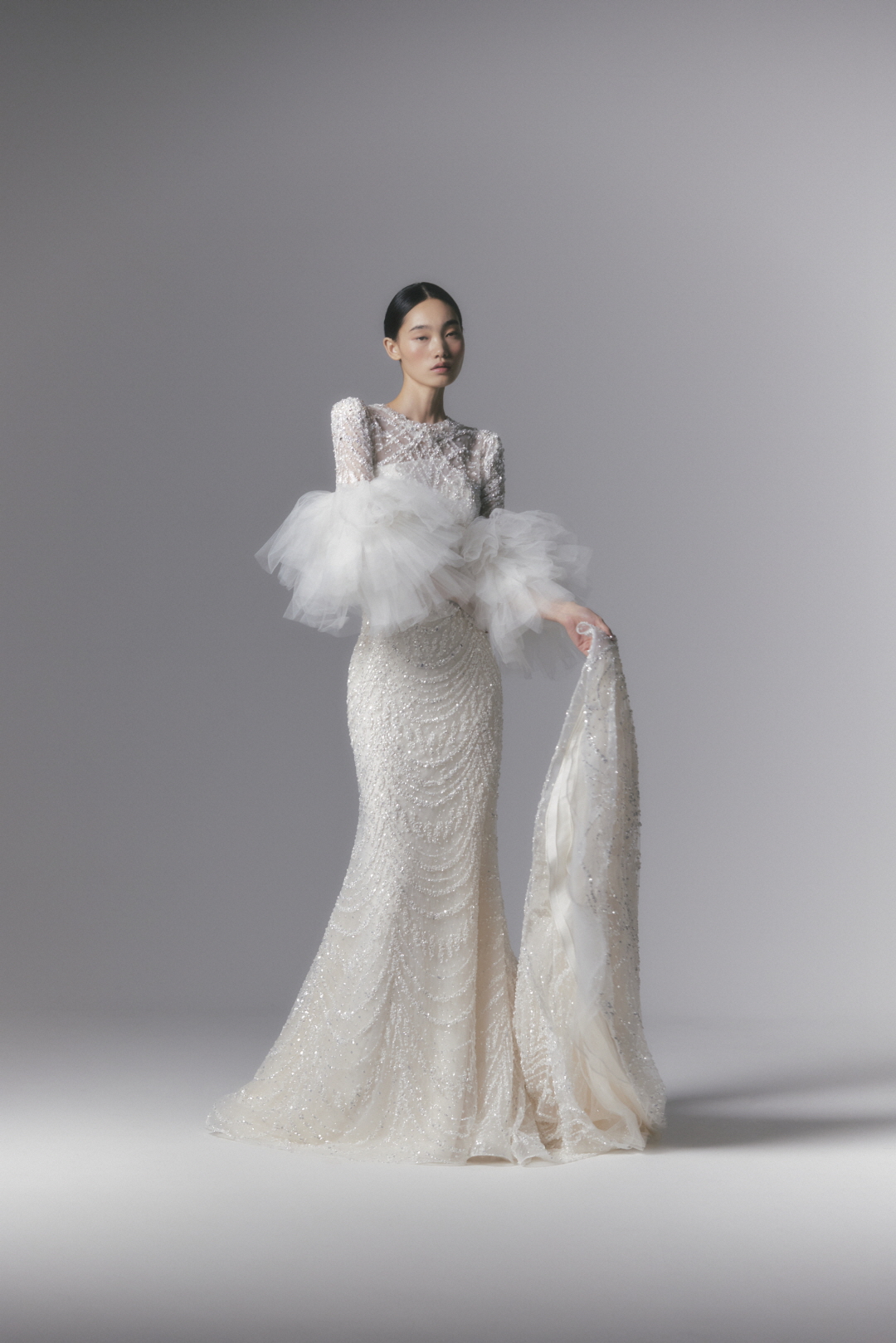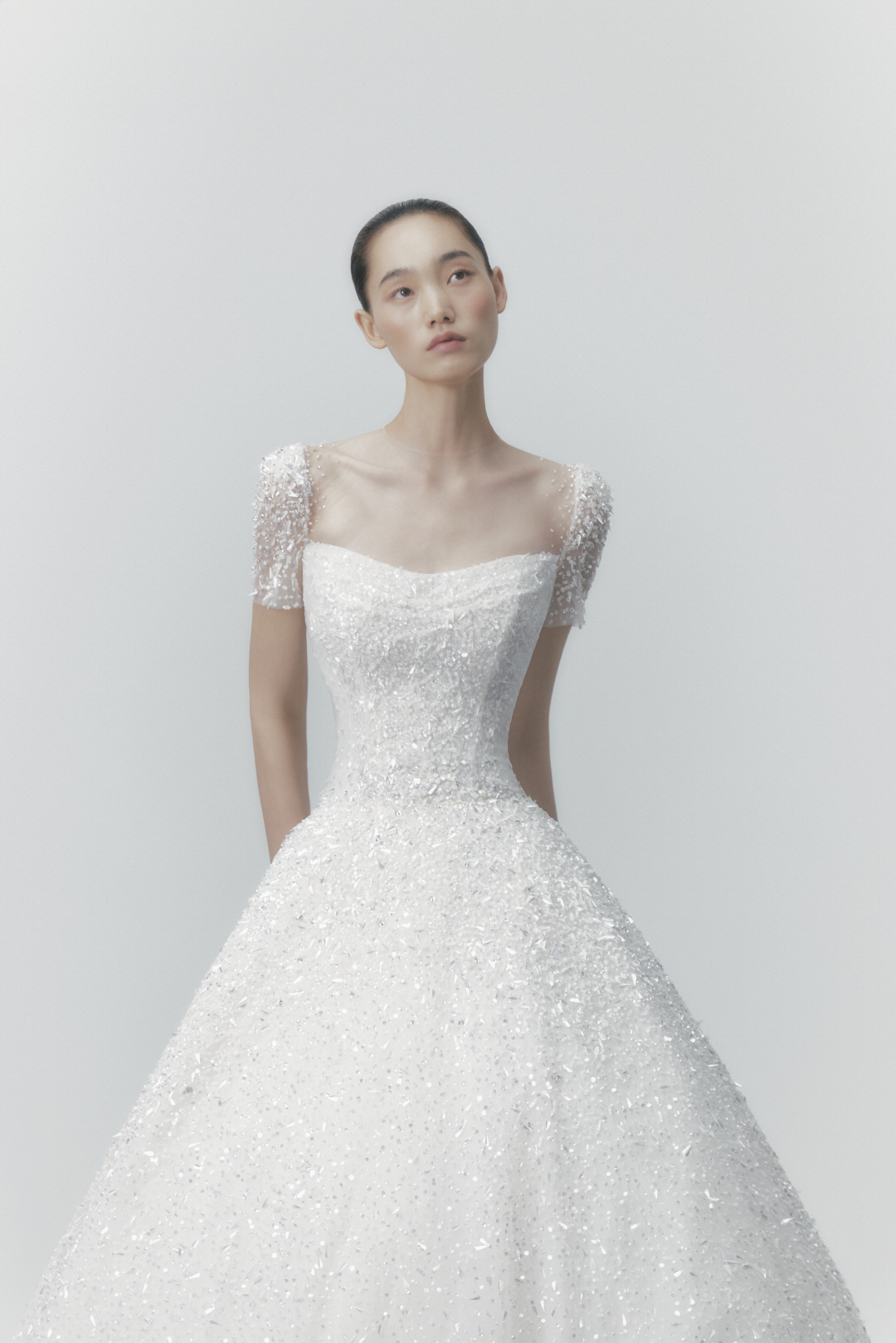 너무 과한 비즈보다는 맑은 비즈가 은은하게 빛 나는 드레스를 원했어요.