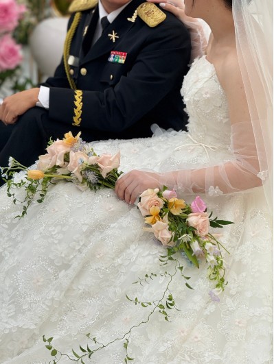 베일은 대기실에선 투베일, 본식땐 플라워 포인트의 원베일을 썼는데 실장님은 심플한 원베일 추천하셨는데 제가 고집부렸어요 ᄒ ᄏᄒᄏ 근데 꽤 어울리지않나요?!