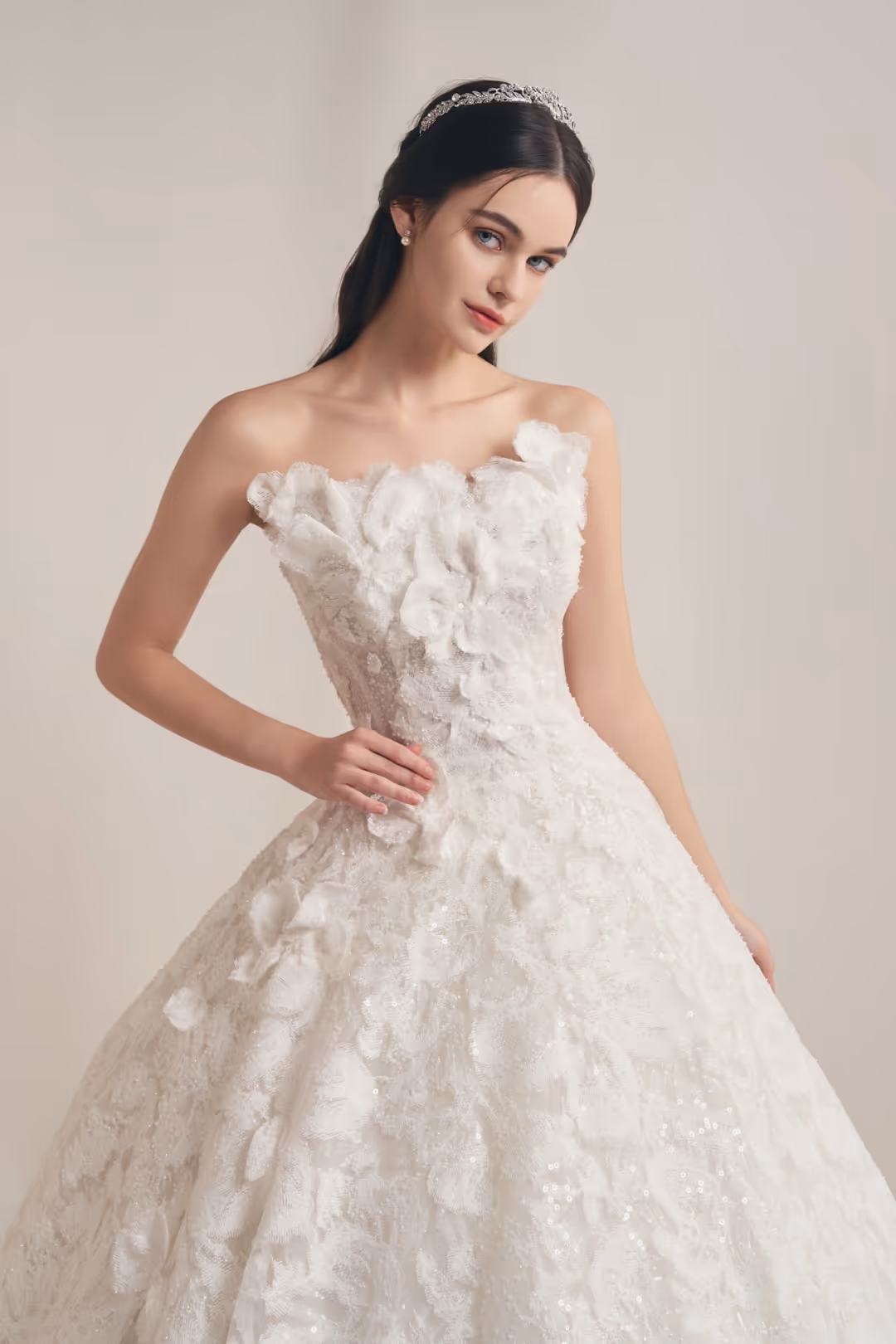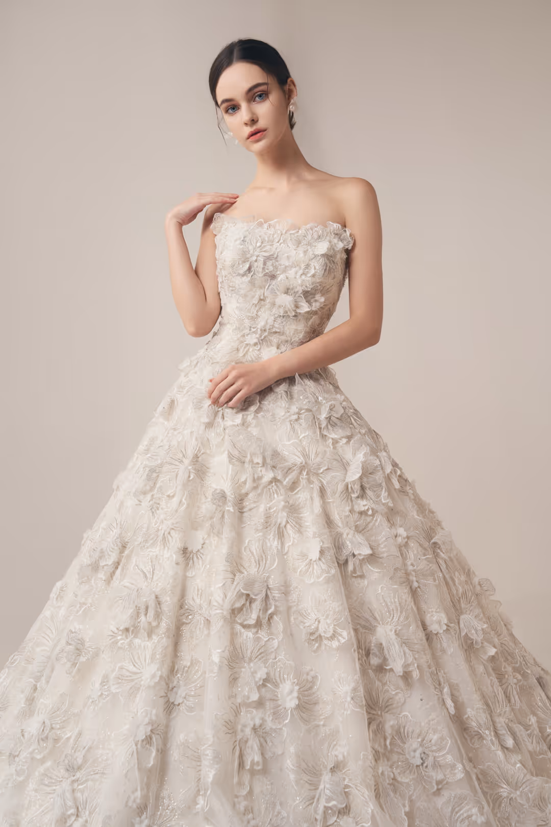 화려함이 눈길을 사로잡습니다. 라인의 아름다움은 극대화되고 유일한 디자인은 신부를 더욱 빛나게 합니다. 압도적인 화려함을 원한다면, 도화브라이드입니다. 1. 국내 디자이너브랜드, 자체 제작 90%+촬영 드레스 수입10% 2. 섬세한 비딩이 돋보이는 다양한 스타일의 드레스 3. 유니크한 디테일과 압도적인 화려함