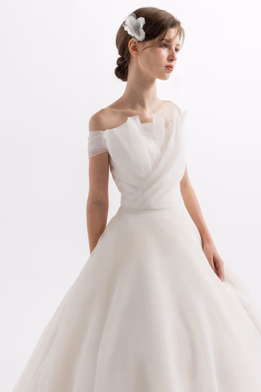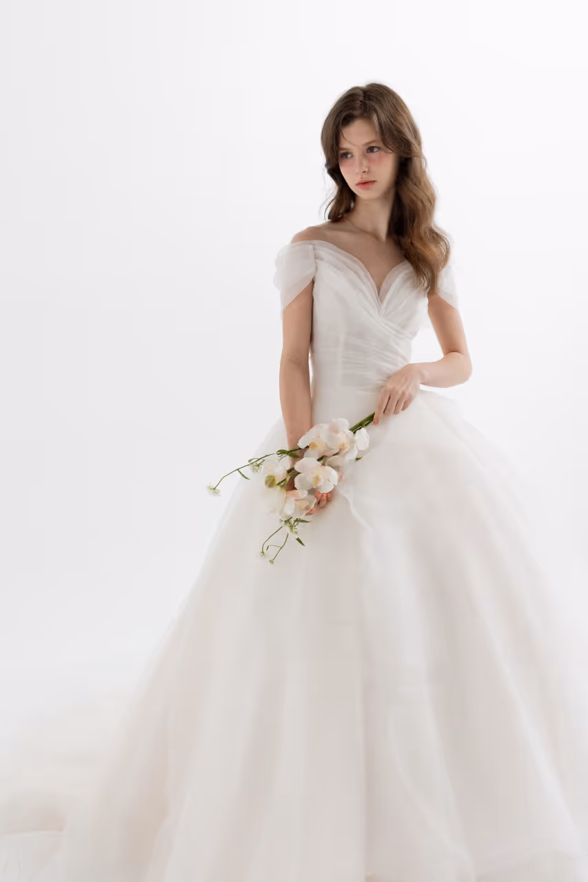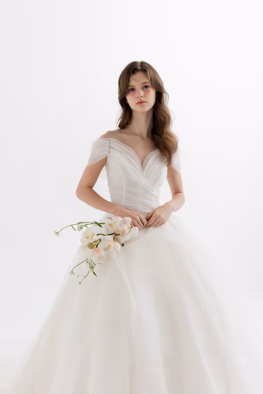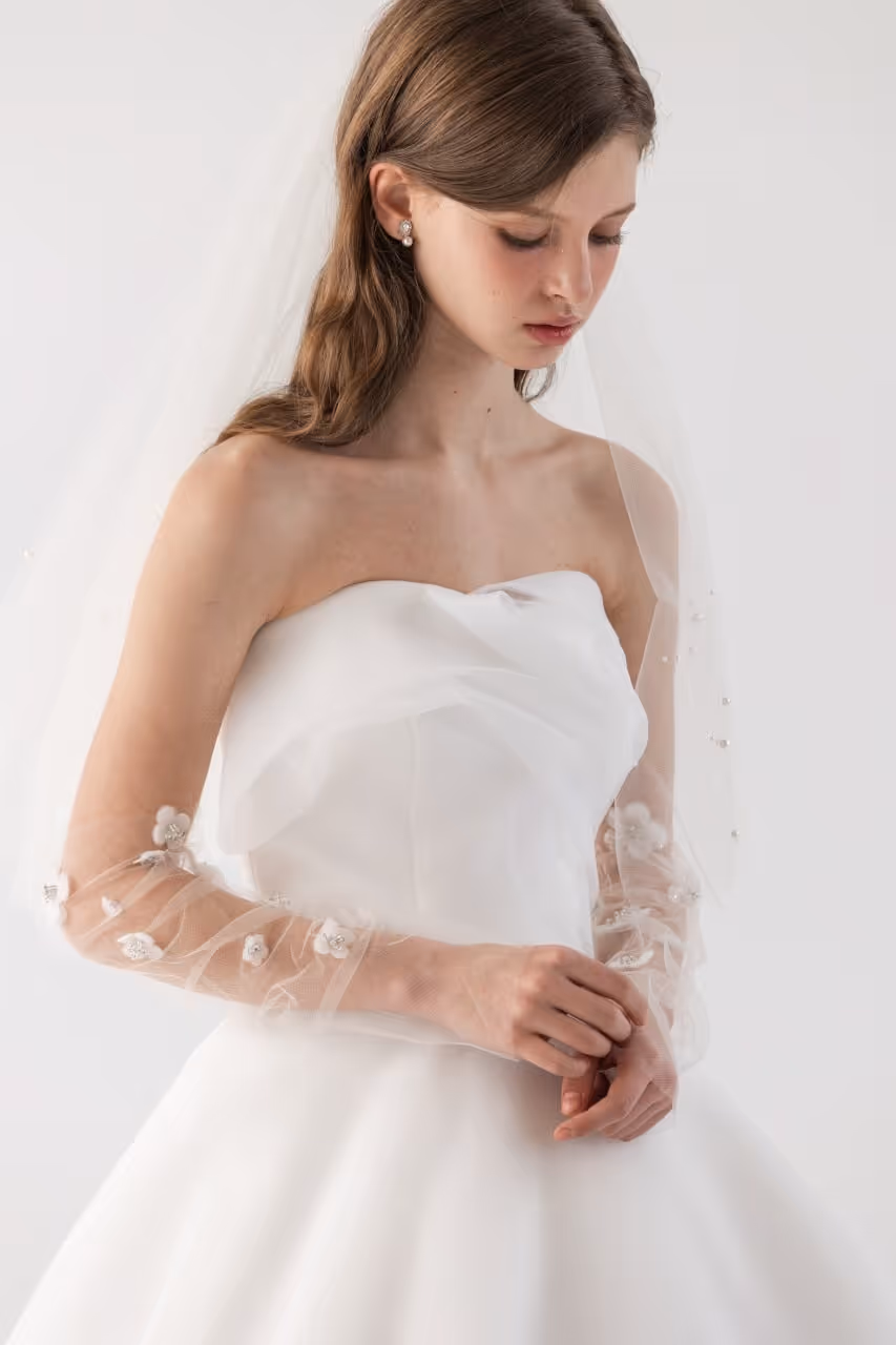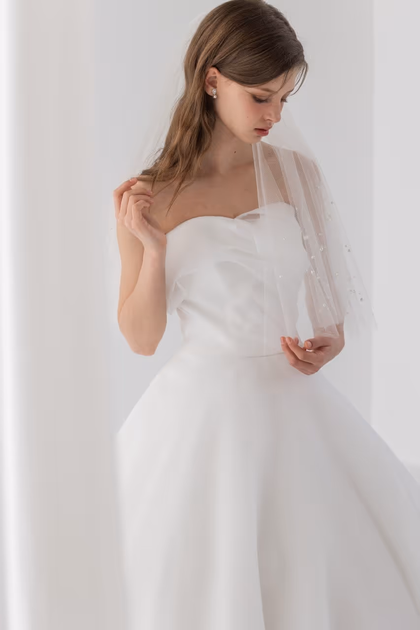 원래는 원숄더로 변형 연출하려고 했는데, 헬퍼님께서 탑드레스가 찰떡이라고 추천해 주셔서 과감하게 탑으로 진행했어요