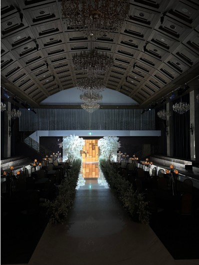 층고도 높아서 웅장함도 느껴 졌습니다. 맨 앞에 섰을 때 보이는 하객석의 모습이에요. 확실히 웅장한 느낌이 납니다.