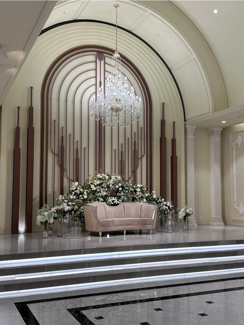 버진로드 입장할 때 동선을 보여주셨는데, 천장 샹들리에가 걸음에 맞춰 불이 들어오는 게 너무 예뻤어요.